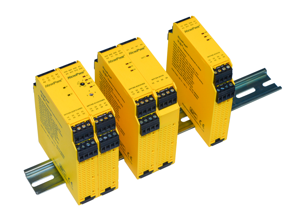 The inputs of K series E-STOP, safety gate input safety relays are normally closed contact signals, which are used for emergency braking or the protection of people entering dangerous areas, and widely used in machining and other industries. Main features: 1oo2 architecture. With detection of shorts across contacts. With monitored manual reset function. The safety function remains effective in the case of a component failure. The correct opening and closing of the safety function relays is tested automatically in each on-off cycle.
