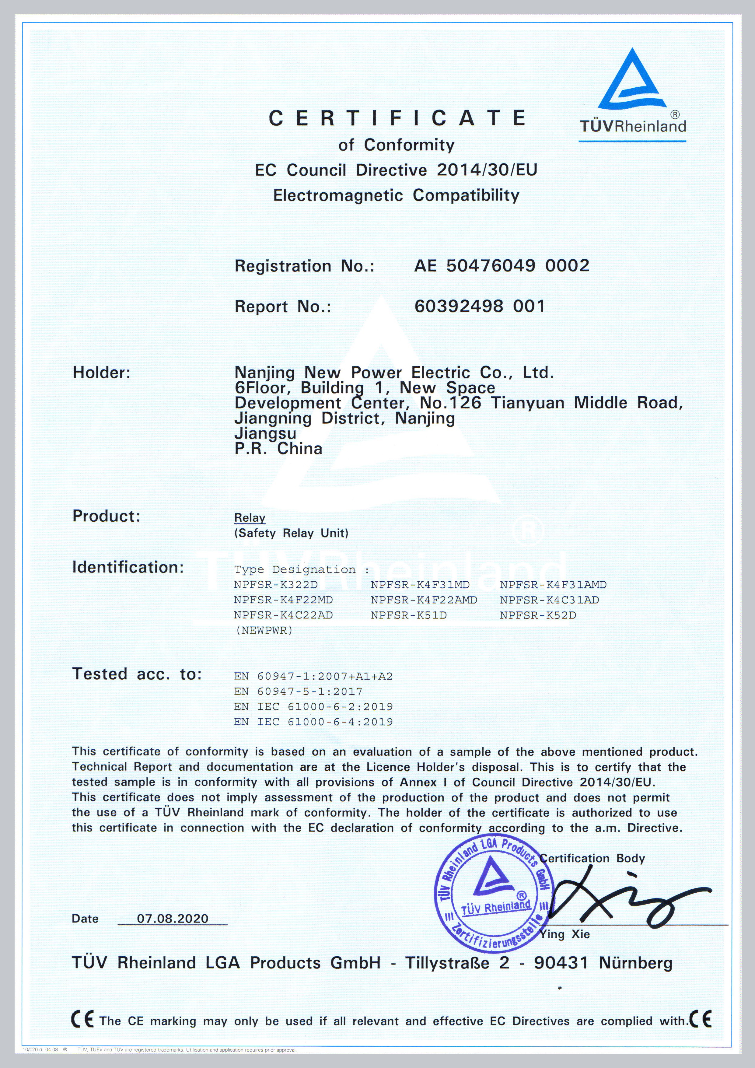 K series safety mat input safety relay is applicable to 4-wire NO contact safety mat input. When a certain weight is applied to the safety mat, the NO contact of the safety mat is closed, and the safety output contact of the control safety relay is open, so as to protect the operators in the dangerous area. Main features: 1oo2 architecture;With detection of input breakage;With auto reset and manual reset function;The safety function remains effective in the case of a component failure;The correct opening and closing of the safety function relays is tested automatically in each on-off cycle.