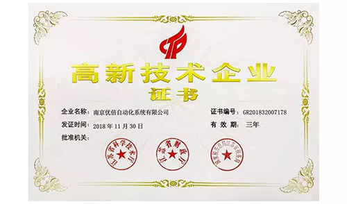 近日,優(yōu)倍電氣全資子公司南京優(yōu)倍自動化系統(tǒng)有限公司(簡稱:優(yōu)倍自動化)收到由江蘇省科學(xué)技術(shù)廳、江蘇省財政廳、國家稅務(wù)總局江蘇省稅務(wù)局聯(lián)合頒發(fā)的《高新技術(shù)企業(yè)證書》,順利通過高新技術(shù)企業(yè)的認(rèn)定。