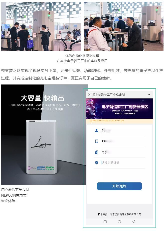 NEPCON China 2019深度貼合電子制造智慧化趨勢(shì),推出2.0 升級(jí)版智能制造夢(mèng)工廠展示線,由NEPCON 聯(lián)手同期強(qiáng)展S-FACTORY EXPO力邀清華大學(xué)SMT實(shí)驗(yàn)室、優(yōu)倍自動(dòng)化和眾多大咖企業(yè)強(qiáng)勢(shì)加盟,鼎力支持NEPCON夢(mèng)工廠,72小時(shí)打造電子智造夢(mèng)想“實(shí)驗(yàn)室”:生產(chǎn)線為盡可能全面展示各生產(chǎn)設(shè)備互動(dòng)互聯(lián)、真實(shí)協(xié)作的動(dòng)態(tài)生產(chǎn)過(guò)程,集結(jié)了一大批電子制造領(lǐng)域?qū)嵙φ股蹋蛟斐芍悄苤圃臁皦?mèng)之隊(duì)”,完整展現(xiàn)充電寶的生產(chǎn)過(guò)程,讓觀眾身臨其境體驗(yàn)智能制造獨(dú)特魅力。