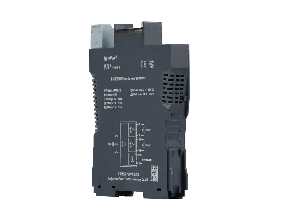 電位器變送器,輸入3線制電位器信號,經(jīng)隔離轉(zhuǎn)換為4~20mA電流信號輸出(其他輸出信號類型產(chǎn)品,具體型號見型譜)。該產(chǎn)品輸入、輸出和電源三端隔離,具有在線故障自診斷功能,可以通過PC端或手持編程器設置電位器零點和滿度,以及輸出信號類型、信號故障時輸出模式等。