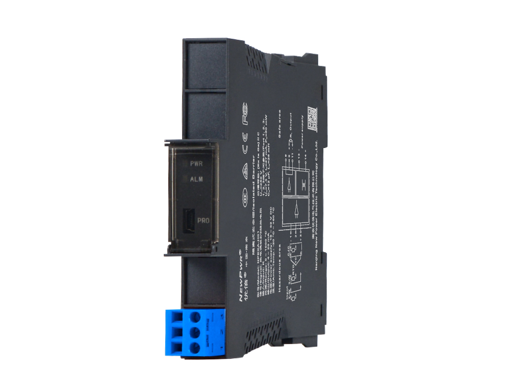 溫度型輸入安全柵,將危險(xiǎn)區(qū)的熱電偶、熱電阻信號(hào),經(jīng)隔離轉(zhuǎn)換為4~20mA電流信號(hào)輸出到安全區(qū)(其他輸出信號(hào)類(lèi)型產(chǎn)品,具體型號(hào)見(jiàn)型譜),外置冷端補(bǔ)償端子。該產(chǎn)品輸入、輸出和電源三端隔離,具有在線(xiàn)故障自診斷功能,可以通過(guò)PC端或手持編程器對(duì)溫度量程、信號(hào)類(lèi)型等進(jìn)行組態(tài)設(shè)置。